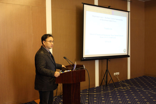 釜山國立大學趙允浩教授做了《Dispersion Curve: The Basic Tool for Understanding of Mysterious Guided Waves 》的大會主題報告,研討會分報告共計19場,內容涉及復合材料超聲檢測、激光超聲檢測、殘余應力超聲檢測、超聲換能器校準、超聲顯微掃查、超聲導波成像及表面波檢測等。