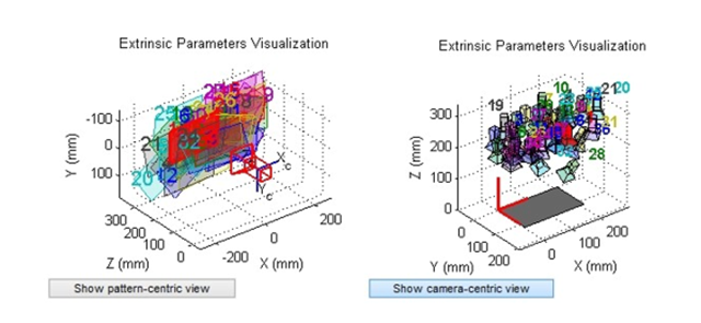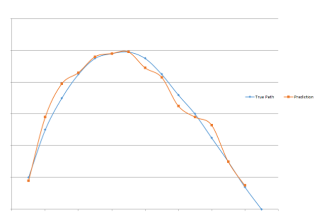 中型組機器人普遍采用全景反射鏡頭來獲取球場的全向信息。但是該種鏡頭會受到其高度的限制,高過反射鏡的圖像無法獲取,因此守門員機器對比賽中常常出現的遠距離吊射無法應對。因此,論文提出引入雙目視覺對球場進行三維建模,基于視差原理,通過相機標定、顏色分割、物體識別、三位測距四個步驟的處理,機器人即可以獲得3D圖像。北理工機器人足球隊使用的是兩個廣角120度攝像頭,采用廣角鏡頭是為了增加機器的可視范圍以及降低成本,但是所得到的圖像畸變嚴重。因此后期采用算法進行了矯正處理,效果如圖5及圖6所示。經處理得到3D圖像后,我們可以獲取高空球飛行的4到5幀的圖像,并能得到每幀圖像中足球的坐標信息,利用曲線擬合我們即能預判出足球的飛行軌跡,從而得到足球的落點位置,擬合結果如圖7所示。