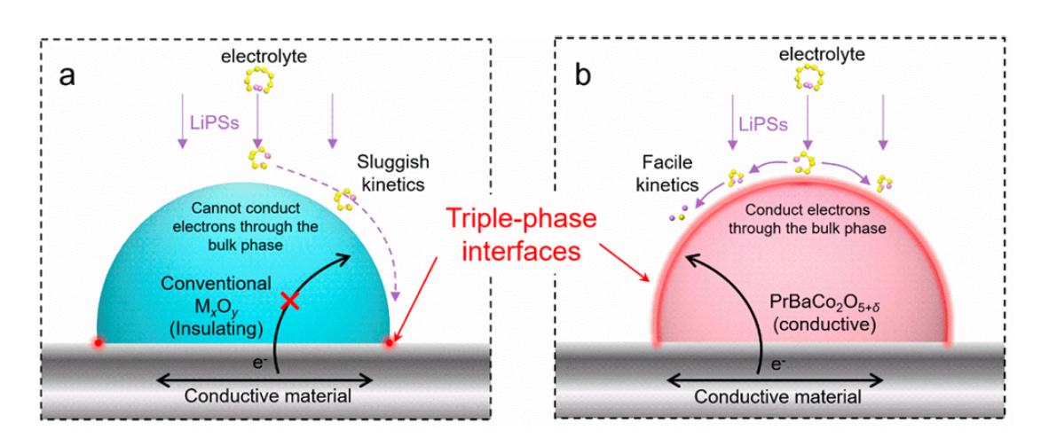 圖1. 多硫化物在傳統(tǒng)氧化物和PBCO表面的催化過(guò)程示意圖