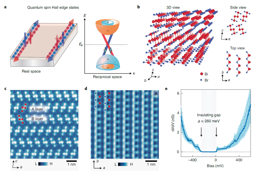 編輯:王莉蓉 審核:姜艷 閱讀次數:近日,北京理工大學物理學院姚裕貴團隊與普林斯頓M. Zahid Hasan團隊等合作,在高質量的Bi4Br4單晶材料表面觀察到室溫下的量子自旋霍爾邊緣態,在實驗上驗證了姚裕貴團隊于八年前提出的理論預言[Nano Lett. 14, 4767 (2014), NJP 17, 015004 (2015)],也為進一步實現室溫下的量子自旋霍爾效應帶來了希望。相關結果發表在近期的Nature Materials上,姚裕貴團隊成員王秩偉研究員為文章共同一作。