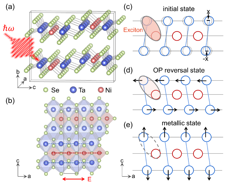 圖1. Ta2NiSe5在超快光激發(fā)前后的特征原子結(jié)構(gòu)。