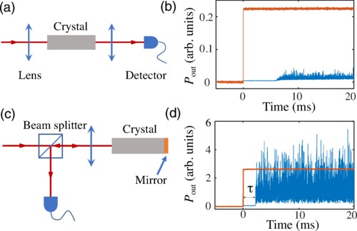 團隊成員在研究高濃度鉺離子摻雜YSO 晶體的透射實驗時發現,由于鉺離子之間的偶極相互作用,此時體系的響應不再具有時間不變性(time invariance),其光學響應不能用一個時域上穩定的函數來表示,這一相互作用相被稱為光學本征不穩定相(Intrinsic Optical Instability)。對于具有不穩定性的光學體系來說,傳統理論和實驗一般都認為需要外加的正反饋才可以實現,例如在光學諧振腔中的光學混沌;但是在這些傳統體系中,系統的響應函數仍然是具有時間不變性的,整體輸出的不穩定性源于輸入信號的微弱偏差在正反饋過程中不斷被放大。然而,團隊成員的研究揭示了材料體系本身就存在著一個本征的不穩定相,此時系統的響應函數是不具有時間不變性的;即使輸入信號絕對穩定,也不會對應一個穩定的輸出,與一般的光學混沌等現象存在本質的區別。光學本征不穩定相是由量子力學中的多體相互作用導致。