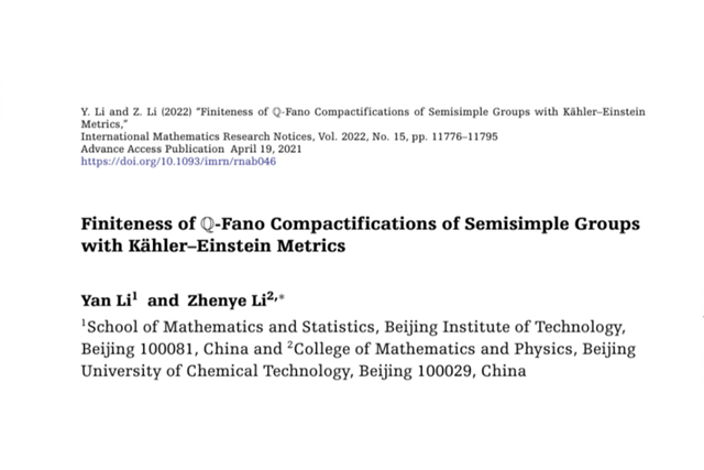 日前,北京理工大學數學與統計學院教師酈言與北京化工大學數理學院教師李振...