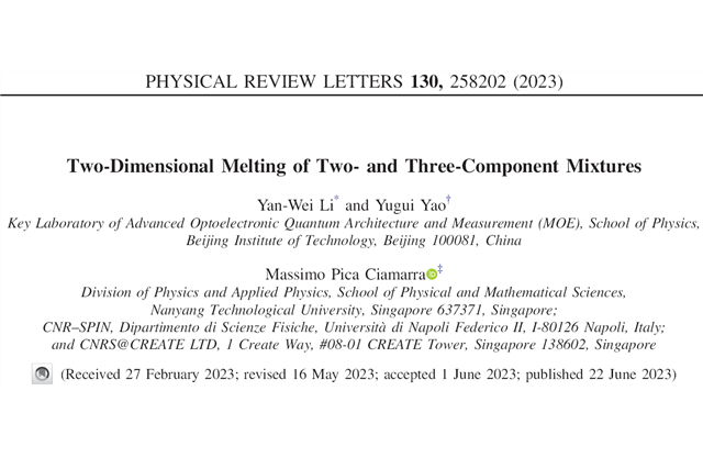 近日,北京理工大學物理學院李艷偉研究員、姚裕貴教授同新加坡南洋理工大學...