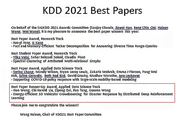 近日,CCF-A類、國際數(shù)據(jù)挖掘頂會(huì) KDD 2021宣布最佳論文獎(jiǎng)項(xiàng)...
