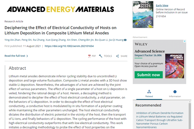 近日,國際材料領(lǐng)域期刊《Advanced Energy Materia...