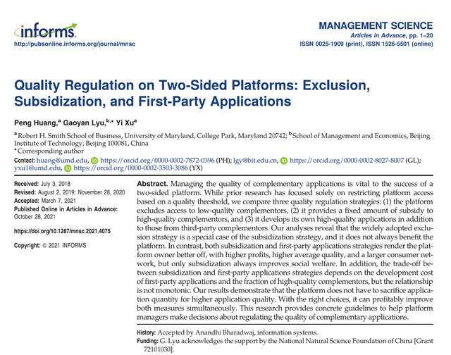 近日,北理工管理與經(jīng)濟(jì)學(xué)院管理科學(xué)與物流系教師呂高燕與美國馬里蘭大學(xué)的...
