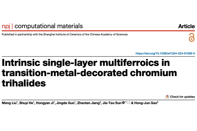 近日,北京理工大學(xué)集成電路與電子學(xué)院孫家濤教授在過渡金屬修飾單層三鹵化...