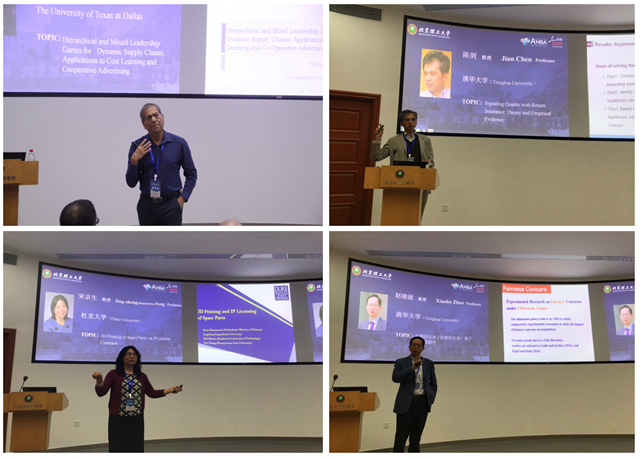 Suresh P. Sethi教授的報(bào)告考慮了分散兩階段供應(yīng)鏈的兩期斯塔克伯格博弈,研究表明平均學(xué)習(xí)率或?qū)W習(xí)率變異性增加會(huì)導(dǎo)致渠道中更大的效率損失。陳劍教授報(bào)告了出現(xiàn)在淘寶網(wǎng)和京東網(wǎng)等各種購物平臺(tái)的退貨政策,通過分析退貨保險(xiǎn)的信息傳遞機(jī)制證明退貨保險(xiǎn)可以是高質(zhì)量商品的有效信號,指出退貨保險(xiǎn)可以改善消費(fèi)者剩余并減少產(chǎn)品退貨。宋京生教授的報(bào)告旨在為原始設(shè)備制造商(OEMs)的3D打印提供建議和指導(dǎo),提出了OEM可以通過出售零件設(shè)計(jì)而非實(shí)體零件來充當(dāng)知識(shí)產(chǎn)權(quán)(IP)許可方。趙曉波教授的報(bào)告考慮了制造商需要雙重采購且面臨兩個(gè)供應(yīng)商提供數(shù)量折扣的供應(yīng)鏈場景,提出了一種行為模型,該模型有助于進(jìn)一步了解群體層面上不同行為驅(qū)動(dòng)因素的重要性。四位特邀嘉賓的精彩主題報(bào)告獲得了師生們的一致好評。