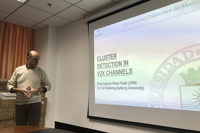 編輯:曹安琪 審核:司黎明 閱讀次數(shù):11月28日下午,北京理工大學(xué)信息與電子學(xué)院聯(lián)合研究生院邀請西班牙馬德里理工大學(xué)Antonio Pérez Yuste教授到我校進(jìn)行學(xué)術(shù)交流。Yuste教授應(yīng)邀做了題為“Cluster Detection in V2X Channels”的“21世紀(jì)學(xué)科前沿”系列學(xué)術(shù)報(bào)告,信息與電子學(xué)院張焱副教授主持報(bào)告,信息與電子學(xué)院多名教師、研究生及留學(xué)生一起聆聽報(bào)告。