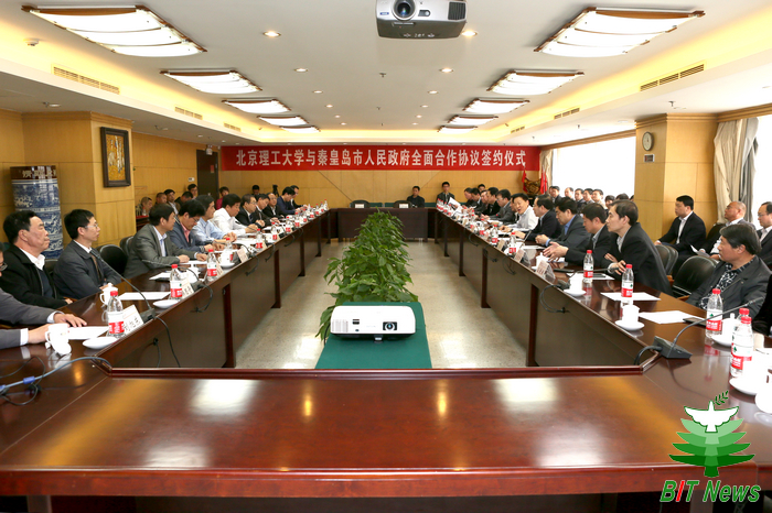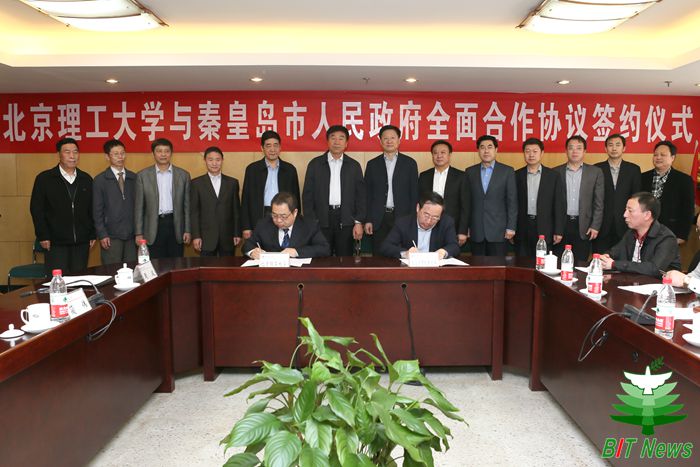 2014年4月13日,北京理工大學與秦皇島市人民政府全面合作協議簽約儀式在北京理工大學國際教育交流中心舉行。秦皇島市委副書記、市長商黎光,副市長張峰,市政協副主席、工商業聯合會主席裴曉鵬,我校黨委書記郭大成,副校長楊樹興、趙顯利,校長助理姚利民等領導同志出席簽字儀式。學校辦公室、黨委組織部、資產經營公司、校團委、繼續教育學院、秦皇島分校等單位負責同志以及秦皇島市工商業聯合會30多位企業家一同參加了簽字儀式。儀式由副校長趙顯利主持。