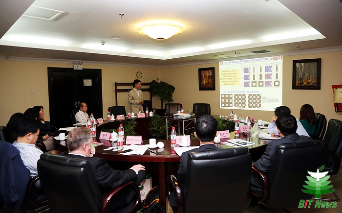 光電聯(lián)合實驗室負(fù)責(zé)人李艷秋教授委托馬旭教授匯報了前期雙方合作協(xié)議的規(guī)定的教學(xué)和研究工作進展。2013年9月,光電聯(lián)合實驗室獲得了明導(dǎo)電子美國總部的項目資助,產(chǎn)出了國際領(lǐng)先的科研成果,有力地推動了雙方實質(zhì)性合作。同時雙方還在研究生聯(lián)合培養(yǎng)等方面取得了實質(zhì)性進展。目前,明導(dǎo)電子公司為光電學(xué)院的3名研究生提供了教學(xué)實踐的實習(xí)崗位。經(jīng)過雙方的共同努力,光電聯(lián)合實驗室各項工作進展順利,逐步深化了雙方在產(chǎn)、學(xué)、研、用各方面的合作。隨后,郝群教授和范明輝總經(jīng)理為光電聯(lián)合實驗室正式成立舉行了揭牌儀式。會后,來賓到7號教學(xué)樓參觀了光電聯(lián)合實驗室,再次深入交流了產(chǎn)、學(xué)、研、用的合作,對實驗室的管理、教學(xué)和科研給予充分肯定。