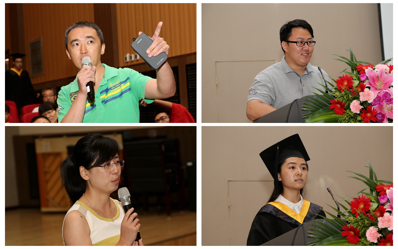出席當天活動的教師代表也先后發言,李靜波老師引用毛主席曾對留蘇學生的寄語——“你們好像八九點鐘的太陽一樣,希望寄托在你們身上”;馬壯老師表示學院將永遠是學生最堅強的后盾,希望畢業生們在未來的生活和工作中遇到困難的時候能夠想起老師;王揚衛老師表示學院對所有的畢業生一視同仁,無論將來是成功或者失敗,學院都愿意敞開懷抱歡迎大家;王林老師、朱時珍老師、郝建薇老師也紛紛用自己樸實的語言表達了他們對于畢業生的祝賀與不舍之情,同時也為畢業生們寄予了深深的祝福。隨后,由2010級5個本科畢業班制作的或幽默或感人、或深情或調侃的畢業視頻調動了所有在場學生內心深處的記憶,在現場很多畢業生留下了難忘的淚水。