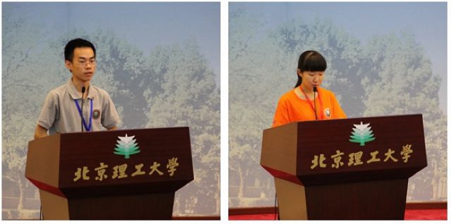 志愿者代表王浩簡要的介紹了志愿者們在科學(xué)營的工作情況,并表示在接下來的活動中,全體志愿者將以飽滿的熱情來工作,與營員和老師一起度過美好的時光。營員代表、北京市第二十五中學(xué)學(xué)生溫鑫表達(dá)了對中國科學(xué)技術(shù)協(xié)會,北京市教育委員會,中國兵器工業(yè)集團(tuán)和北京理工大學(xué)的感謝,希望在科學(xué)營的生活中收獲知識,收獲友誼。