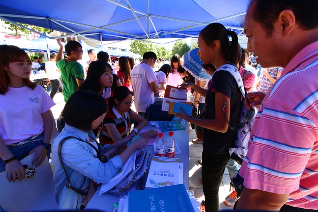 學(xué)校繼續(xù)堅持做好在入學(xué)報到時的人性化服務(wù),如在迎新站為家庭困難學(xué)生開通“綠色通道”服務(wù),除辦理緩繳學(xué)費住宿費等業(yè)務(wù)外,還為部分學(xué)生提供生活必需品和通訊服務(wù),幫助他們順利入學(xué),安心開展大學(xué)學(xué)習(xí);安排車輛赴火車站開展新生接送服務(wù),并將新生行李集中運送回校區(qū);設(shè)置家長休息區(qū);開設(shè)網(wǎng)上預(yù)報到上網(wǎng)機房服務(wù);組織出版社開展售書服務(wù),分專業(yè)打包為新生提供第一學(xué)期所用書籍;做好新生入學(xué)階段的生活用品售賣、熱水保障和餐飲服務(wù)等工作;開放校園,做好車輛引導(dǎo)和停放的組織工作。在各個部門的共同努力下,迎新工作順利開展,學(xué)生報到有序進行。