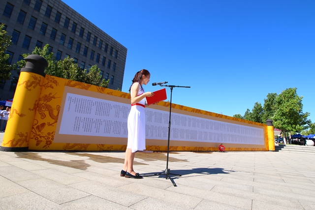 迎新現(xiàn)場設(shè)置了國學(xué)經(jīng)典誦讀,引導(dǎo)新生從傳統(tǒng)文化中思考立德修身的理念(本圖由校記者團提供)