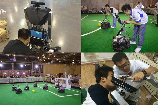 在本次大賽中,機器人中型組項目是一個國際合作項目,以MAS(Multi-Agent System)和DAI(Distributed Artificial Intelligence)為主要研究背景。該項目的最終目標是直至2050年開發出完全自主仿人的機器人隊,以期超越人類足球世界冠軍隊。為了能夠作為一支真實的團隊進行機器人足球比賽,機器人足球隊必須掌握包括智能體自主設計、多智能體協作、策略獲取、實時推理、機器人和傳感器融合等多種尖端技術。我校機器人足球隊Robit已經連續四次參加該項目的比賽,并在此次比賽中與多支具有國際水準的球隊競技比拼,在規定項目和自選項目上均獲得了一等獎。此優秀的成績保持和延續了去年我們已取得的佳績。