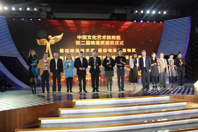 中國文化藝術(shù)政府獎動漫獎是經(jīng)中央批準,由文化部在中國文化藝術(shù)政府獎中增設的國家級獎項,與文華獎、群星獎并列,是我國動漫產(chǎn)業(yè)的政府獎、最高獎,每3年評選一次,每次設立30個獎項。第二屆動漫獎的申報工作于今年3月底啟動,共收到34個省、自治區(qū)、直轄市和計劃單列市的申報材料630份,經(jīng)材料審查、初評評審、終評評審,最終評選出12個類別的30個獲獎項目和80個入圍項目。