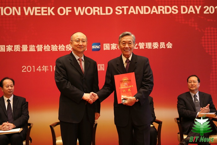 今年10月14日是世界標準日,為表彰郎志正教授近50年對中國標準化理論與實踐的貢獻,國家質檢總局和國家標準化委員會給郎教授頒發了國家政府獎項—中國標準創新貢獻終身成就獎。