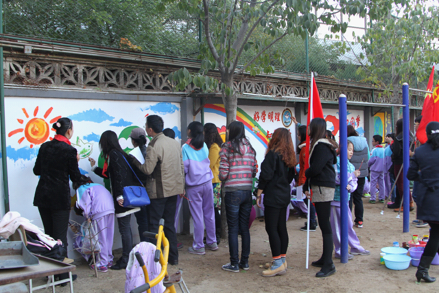 為貫徹落實中央《關于培育和踐行社會主義核心價值觀的意見》精神及共青團中央的部署要求,以習近平總書記系列重要講話精神為指引,進一步引導青年學生自覺將社會主義核心價值觀內化于心、外化于行,在校宣傳部的倡議下,北京理工大學設計與藝術學院、理工附小共同開展了以“大手拉小手、踐行社會主義核心價值觀”為主題的校內墻體繪畫活動,積極將培育和踐行社會主義核心價值觀活動不斷深入推進。