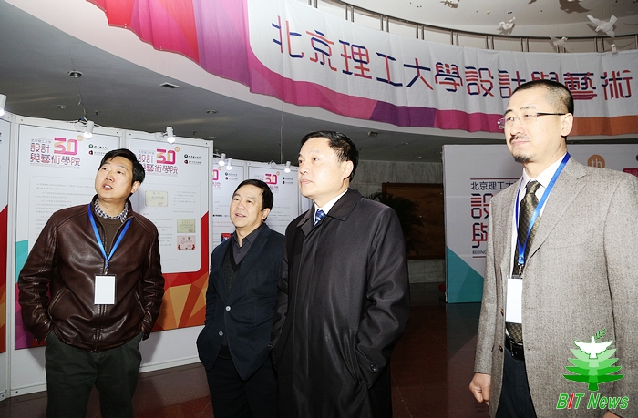 校黨委書記張煒、校長胡海巖教授、副校長楊賓教授、紀委書記楊蜀康教授和嘉賓、師生們首先共同參觀了特意為本次活動精心籌備、設計的“建院30周年發展回顧展”?;仡櫿箤⒕哂袣v史感和文獻性的文字和圖片作為展示內容,全面展示了設計與藝術學院30年的發展歷程以及在教學、科研領域取得的豐碩成果。