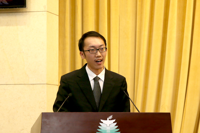 徐特立獎學(xué)金獲獎代表自動化學(xué)院2011級本科生趙曄代表獎學(xué)金獲得者發(fā)言。他懷抱著科技報國的夢想,參加多項創(chuàng)新競賽和科研工作。他堅守全面發(fā)展的信念,毫不放松對自己學(xué)習(xí)成績的要求,積極參與學(xué)生社團、社會實踐,志愿服務(wù)等工作。他將以謙虛的態(tài)度面對榮譽,以踏實的作風走向更廣闊的天地。