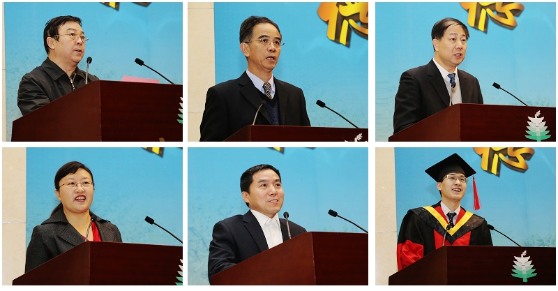 孫逢春宣布了準予畢業研究生名單和學位授予決議。常務副校長楊賓宣讀了校優秀博士、碩士學位論文及優秀指導教師表彰決定。主席臺領導和嘉賓為校優秀博士、碩士學位論文獲獎學生及優秀導師代表頒發榮譽證書。副校長項昌樂宣布了優秀畢業研究生表彰決定及名單,主席臺領導和嘉賓為優秀畢業生代表頒發榮譽證書。