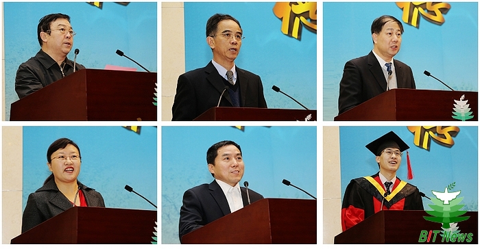 2月4日,北京理工大學2015屆研究生畢業典禮暨學位授予儀式在中心教學樓一層報告廳隆重舉行。黨委書記張煒,校長胡海巖,常務副校長楊賓,常務副書記趙長祿,副校長趙平、楊蜀康、孫逢春、楊樹興,紀委書記楊志宏,副校長項昌樂,校友代表上海航天局科技委常委李海生出席畢業典禮,各學院領導、相關職能部門負責人和教師代表參加了畢業典禮。典禮由學校辦公室主任郝志強主持。畢業典禮在莊嚴的國歌聲中拉開帷幕。
