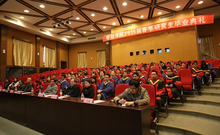編輯:宇航學院 鐘艷玲 閱讀次數: 2015年3月19日下午2:30,北京理工大學宇航學院2015屆研究生畢業典禮暨學位授予儀式在七號樓報告廳拉開序幕。宇航學院院長胡更開、黨委書記于倩、副院長唐勝景、副院長王寧飛、副院長崔平遠和教師代表張景瑞教授,學院研工委相關老師及輔導員徐瑩瑩,與部分學生家長及全體2015屆春季畢業研究生出席此次典禮,共同見證這一神圣的時刻。典禮儀式由宇航學院副書記、副院長肖雄主持。