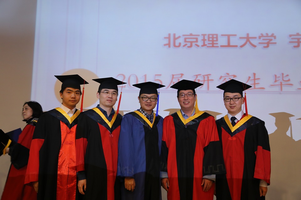 典禮伴隨著振奮的國歌拉開帷幕,唐勝景教授宣讀了學位授予決定。經學位委員會審核通過,我院畢業生工87人獲得工學碩士學位,30人獲得工學博士學位。王寧飛教授宣讀了2015屆春季優秀畢業研究生授予決定。我院共有6人獲得北京市優秀畢業研究生稱號,12人獲得北京理工大學優秀畢業研究生稱號。胡更開院長、崔平遠副院長為獲得優秀畢業研究生稱號的同學頒獎。