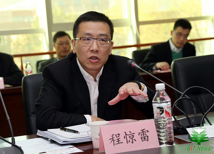 機械與車輛學院副院長胡紀濱,介紹了學校自延安自然科學院至今的發展歷程,學校的重點優勢學科和“強地、揚信、拓天”的發展戰略。胡院長列舉了我校近年來在國慶閱兵、奧運智能編排、煙火技術、電動大客車、神八、嫦娥二號等工作中提供的關鍵技術,介紹了機械與車輛學院的專業分布、學科建設成果;就新能源車輛、無人車、半主動懸掛、發動機、制造等方面詳細介紹了機械與車輛學院的科研情況。科學技術研究院常務副院長王魯介紹了我校在信息電子、光電、自動化、計算機、軟件等跨學院的交叉學科優勢,以及近年來瞄準科技前沿領域取得的顯著成果。