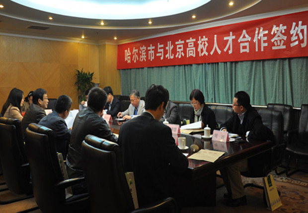 會上,包括我校在內(nèi)的北京8所高校代表與哈爾濱市人力資源和社會保障局領導簽訂了人才合作協(xié)議,并就加強校地雙方合作以及人才引進的方式、方法等問題進行了交流座談。