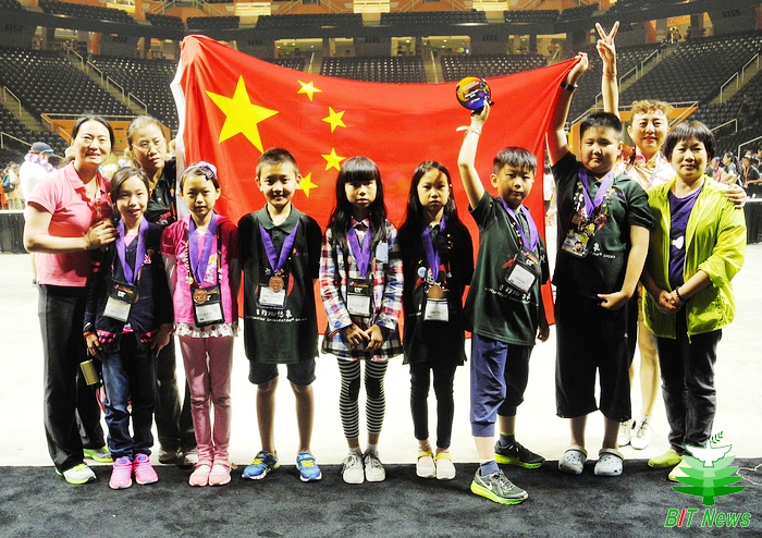 理工附小7名小選手平均年齡不足11歲,雖然第一次參加世界大賽,但是各個信心百倍,經過頑強拼搏,最終獲得挑戰C項目小學組全球第三名的好成績,站在了世界的領獎臺上,為國爭光!