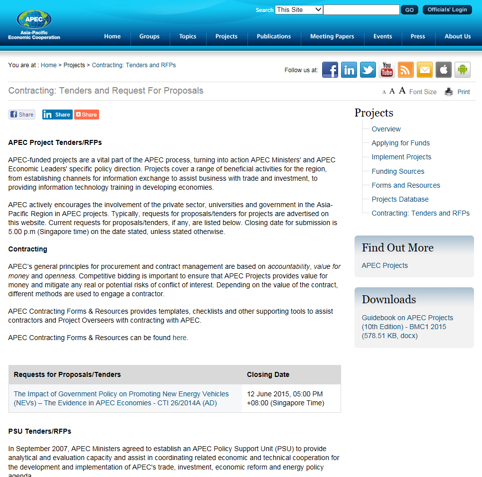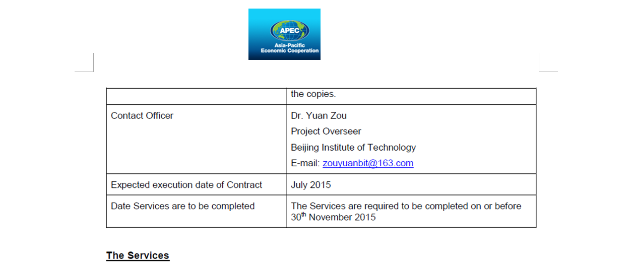 在APEC的官方網站文件中(http://www.apec.org/~/media/Files/Projects/TendersRFPs/2015/CTI 26 2014A_RFP.pdf),我校機械與車輛學院副教授鄒淵老師任項目負責人和官方聯系人。