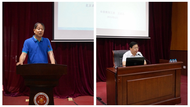 2015年北京高校新上崗輔導員培訓班(北京理工大學)于6月15日在七號教學樓108教室舉行了開班儀式。北京理工大學黨委副書記、副校長項昌樂,北京市委教育工委宣教處處長王達品,北京理工大學學生工作處副處長徐建出席了開班儀式。來自中國人民大學、中央民族大學、北京外國語大學、北京體育大學、首都體育學院、北京舞蹈學院、北京理工大學等七所高校58名新上崗輔導員等參加了本次培訓。