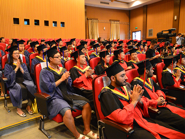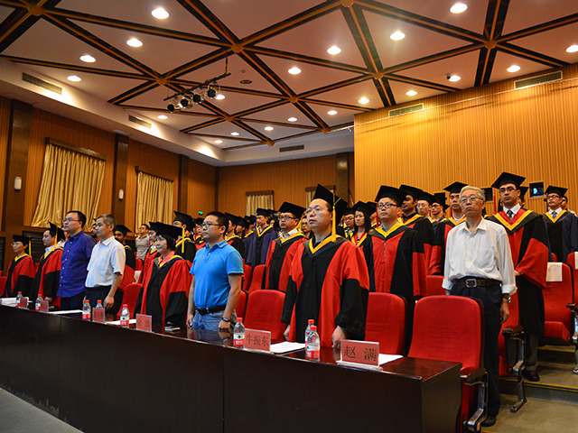 最后,黃河燕院長代表學院在典禮上致詞,對順利完成學業并即將踏上新的人生征途的2015屆畢業生表示熱烈的祝賀,向為此辛勤付出的教職員工和親友表示感謝。在大家揚帆起航之際,黃院長強調最多的是“擔當”與“責任”。 “士不可不弘毅,任重而道遠”,結束研究生學習,標志著畢業生們系統地接受了高等教育;而走上社會之后,黃院長勉勵大家要時刻牢記自己肩負的責任,這包括對自己的責任、對家庭的責任以及對社會、對國家的責任。“人所能擔的責,我必能擔;人所不能擔的責,我亦能擔”,黃院長衷心寄語畢業生,希望大家能將擔當貫穿于生活和工作的點點滴滴。最后,黃院長代表學院表達了對所有畢業生最誠摯的祝福。