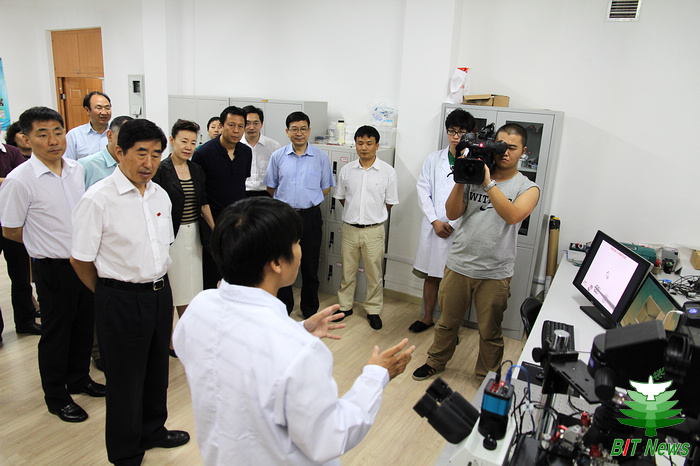 海淀區(qū)政協(xié)辦公室主任劉玲、研究室主任黃英、專委會工作二室主任吳明波、專委會工作四室副主任黃繼曄、專委會工作二室副調(diào)研員俞宙彤、區(qū)政協(xié)委員代表等,海淀區(qū)經(jīng)信辦主任何建吾、副主任申宏艷,我校黨委統(tǒng)戰(zhàn)部部長姜艷、學(xué)校辦公室副主任周波、科學(xué)技術(shù)研究院高新技術(shù)部副部長胡俊、機(jī)電學(xué)院副院長王亞斌、教授福田敏男等陪同考察。