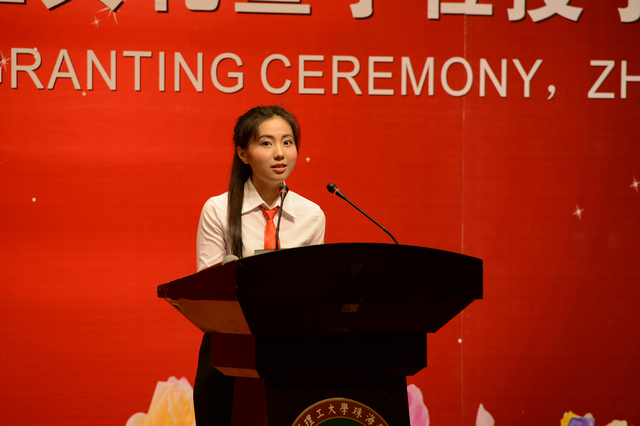 畢業(yè)典禮上,珠海學(xué)院院長趙顯利教授以““理想、擔(dān)當(dāng)、感恩、奮進(jìn)”為主題,從師長角度闡釋在紛繁復(fù)雜、功利浮躁的社會環(huán)境下,面對結(jié)構(gòu)調(diào)整、創(chuàng)新驅(qū)動的社會環(huán)境,堅守理想、勇于擔(dān)當(dāng)至關(guān)重要;感恩是一種道德,一種處世理念,是生活的智慧之源;奮進(jìn)一種精神,一種工作態(tài)度,是事業(yè)的驅(qū)動之力。趙院長表示,珠海學(xué)院的畢業(yè)生不僅是珠海學(xué)院的校友,也是北京理工大學(xué)的校友。今年正值北京理工大學(xué)建校75周年,希望全體畢業(yè)生無論身處何方,從事何業(yè),都要培育擔(dān)當(dāng)精神、常懷感恩之心,多回母校看看。