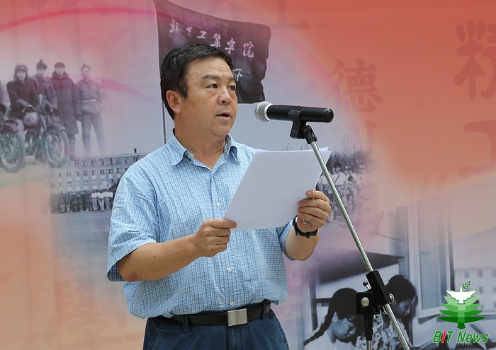 開展儀式上,楊賓在講話中指出,北京理工大學在75年的辦學歷程中,北京工業學院是承前啟后、繼往開來的重要階段,37載“京工歲月”,學校不僅繼承弘揚了“延安根”,還鑄就了“軍工魂”。在此期間,學校的政治堅定、服務國家的愛國精神得以充分體現;實事求是、求知創新的科學精神逐漸形成;艱苦奮斗、自強不息的創業精神得到延續和弘揚。他指出,在學校大力推進綜合改革、建設中國特色世界一流理工大學的今天,用珍貴的歷史圖片和校史實物向師生、校友展示那段輝煌歲月,旨在號召全校師生要學習和繼承前輩們崇德尚行、學術報國的情懷,繼續書寫任重致遠、進取務實、銳意鼎新的精神品格,為北京理工大學的美好明天努力奮斗!