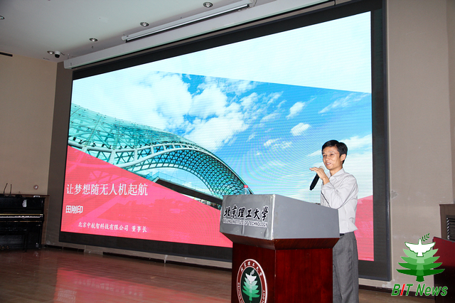 田剛印與大家進行了近一小時的交流互動,通過幾段視頻展示目前世界領先的專業領域成果和未來發展方向,以低調的自信解答在場師生的各種疑問。他以捐助一架無人機來慶賀北理工75周年校慶,全力支持北理工學子的航模夢想。
