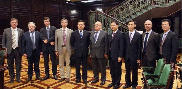 Sadovnichy 校長(右5)歡迎胡校長(左5)、趙平副校長(左4)一行