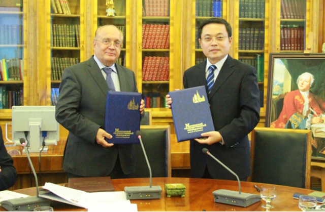 胡海巖校長和Sadovnichy校長簽署兩校新的合作協議和深圳北理莫斯科大學補充協議