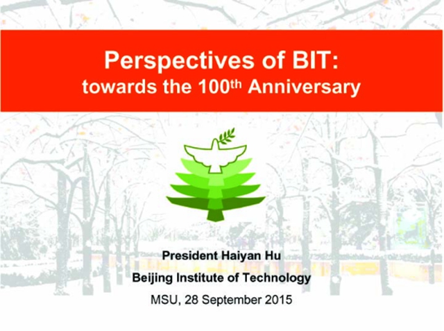胡校長隨后做了題為“北理工建校百年愿景(Perspectives of BIT: towards the 100th Anniversary)”的演講,從歷史回顧之一(1940~1980)、歷史回顧之二(1980~2000)、新世紀辦學思路(2001~2040)三個歷史階段展現我校發展軌跡和未來愿景,系統闡述了建設亞洲/世界一流理工大學的目標、瞄準國家戰略需求的發展定位、學術為基和育人為本的價值取向、開放辦學的國際化戰略。