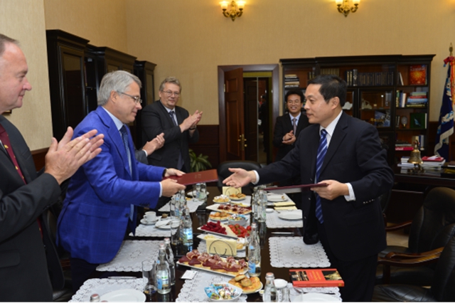 胡海巖校長與MEPHI第一副校長簽署合作協議和共建實驗室協議