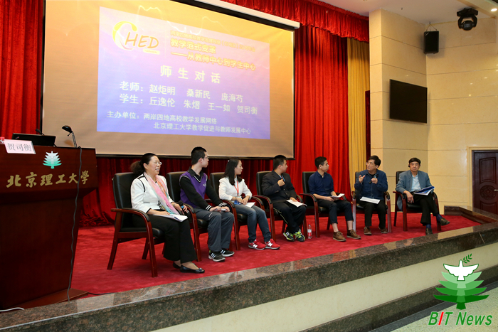 尤為突出的是圍繞“學生中心”特色,CHED2015年會特設了“師生對話”活動環(huán)節(jié),邀請了四位北京理工大學本科生——信息學院賀思衡、材料學院朱熠、外國語學院丘逸倫、王一如同與會專家趙炬明、桑新民、龐海芍三位教授進行現(xiàn)場對話,引發(fā)與會代表強烈共鳴,會場爆發(fā)出陣陣掌聲和笑聲。