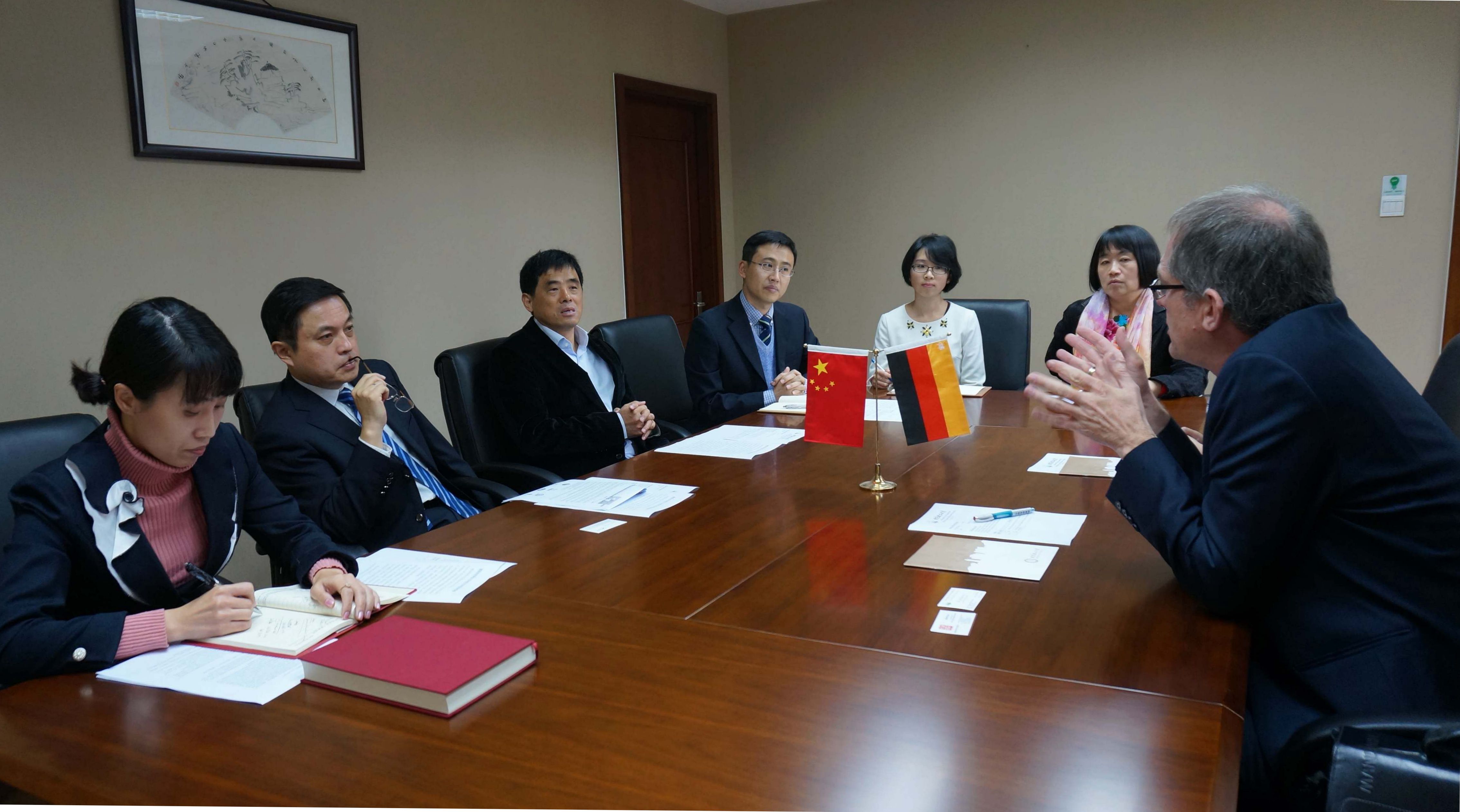 與會人員討論了在相關領域開展學生和科研項目合作的可行性。德國巴伐利亞州教育代表高璇陪同Leible校長訪問。北京理工大學參加會談的人員有:管理與經濟學院副院長孟凡臣、教務處副處長徐瑾、國際交流合作處副處長邢清清、留學生中心副主任趙坤等。