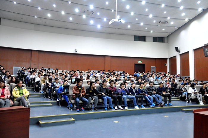 張青山以自身的求學和生活經歷開頭,提出讀書的目的不應只是升學就業,而應立足于振興國家和民族。他將講座內容分為幾個關鍵詞:1.大學教育目的,指出大學生要學會表達,學會批判性思考,培養高尚品德,成為現代社會合格公民,培養廣泛興趣并具有全球化視野,為職業生涯做好準備;2.老師,通過列舉古代圣賢和陳寅恪等大師的教育理念,提出“以生為本,視生如子”的教育主張;3.專業,以哈佛大學莊小威教授的事跡教導大家要淡化專業概念,珍惜學習機會,打牢學科基礎,培養學習能力,特別是數學和物理課程不能“欠債”,不論家庭貧富,只要在各自領域足夠努力,就會有所成就;4.讀書,指出書是民族的靈魂,精神財富比物質財富更重要,并向在場同學推薦了《平凡的世界》、《黃帝內經》、《曾國藩家書》等經典著作,鼓勵同學們閱讀經典,凈化心靈;5.讀研出國,我國在經濟、教育、科技領域距世界先進水平仍有較大差距,希望同學們繼續深造,開闊國際化視野;6.朋友,校園環境純潔、珍貴,應該坦誠相待、珍惜機會,與優秀的人交朋友。珍惜每一分錢,常懷感恩之心;7.假期,合理利用假期,參加讀書和創新活動,增長視野,做到腳踏實地,仰望星空,心懷天下。