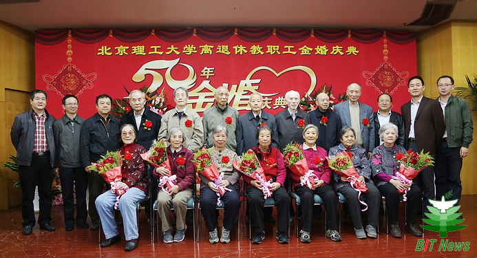 11月5日,由離退休教職工黨委、離退休工作處主辦的“北京理工大學2015年離退休教職工金婚慶典”在北理工國際交流中心二層多功能廳隆重舉行。學校常務副校長、離退休工作領導小組副組長楊賓出席慶典活動,33對金婚伉儷(另有7對未能參加現場活動)與學校辦、組織部及金婚伉儷原所在單位的領導們歡聚一堂,共同慶祝這一美好、幸福的時刻。慶典活動由離退休工作處副處長范友聯主持,離退休教職工黨委書記蔡婷婷宣讀了金婚伉儷的名單,并代表離退休教職工黨委、離退休工作處祝福金婚伉儷相親相愛、幸福永久、同德同心、幸福綿長。