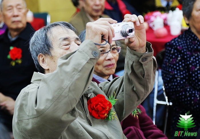 楊賓致賀詞,代表學校黨政領導向全體金婚伉儷表示誠摯的祝賀!他指出,在座的金婚伉儷是北京理工大學的開拓者和建設者,創造了北理工的輝煌,為學校又好又快的發展奠定了堅實的基礎。飲水思源,學校高度重視并時時關注著離退休教職工的生活,努力營造和諧美好的校園氛圍。今后,學校將結合上級的工作要求和自身發展實際,繼續對老同志給予更多更好的關愛。他指出,五十年里金婚伉儷們互敬互愛、相濡以沫,引領家庭和睦、代際和順、社會和諧的良好風尚,這是家庭的幸福和驕傲,更是和諧社會的福祉。他希望金婚伉儷們能夠進一步發揮典型示范的作用,為構建美好、和諧的校園貢獻力量。楊賓常務副校長還向全校離退休教職工表達了良好的祝愿,祝老同志們身體健康、闔家幸福、萬事如意!