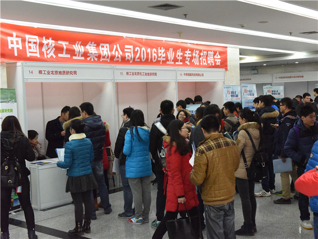 12月22日上午,我校在體育館南廳舉辦了中國核工業集團公司專場招聘會。包括中國核電工程有限公司、中國原子能科學研究院、中國原子能工業有限公司、中國核科技信息和經濟研究院在內的27家單位參加了本次招聘會。